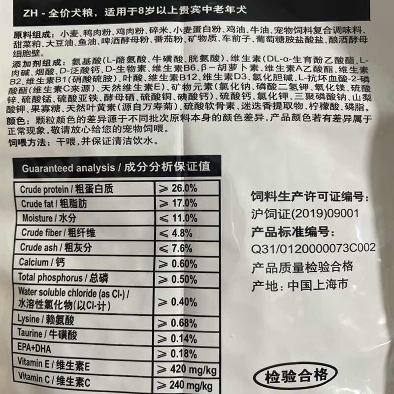 翡冷翠 生命防护系列M26中老年狗粮1.5kg
