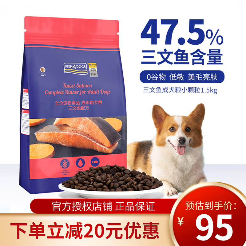 海洋之星(fish4dogs)狗粮无谷天然成犬粮美毛三文鱼配方泰迪比熊金毛萨摩耶狗粮通用型 【成犬粮1.5kg】三文鱼小颗粒