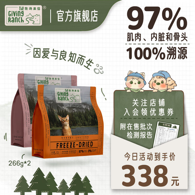 牧场来信冻干主食猫粮生骨肉幼成猫咪鸡鸭鹅兔发腮全价 猫用兔肉*1 鸭鹅肉*1