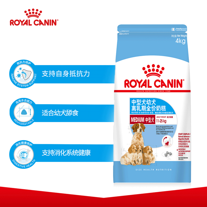 皇家狗粮(Royal Canin)幼犬奶糕 中型犬通用 支持消化系统健康 4kg