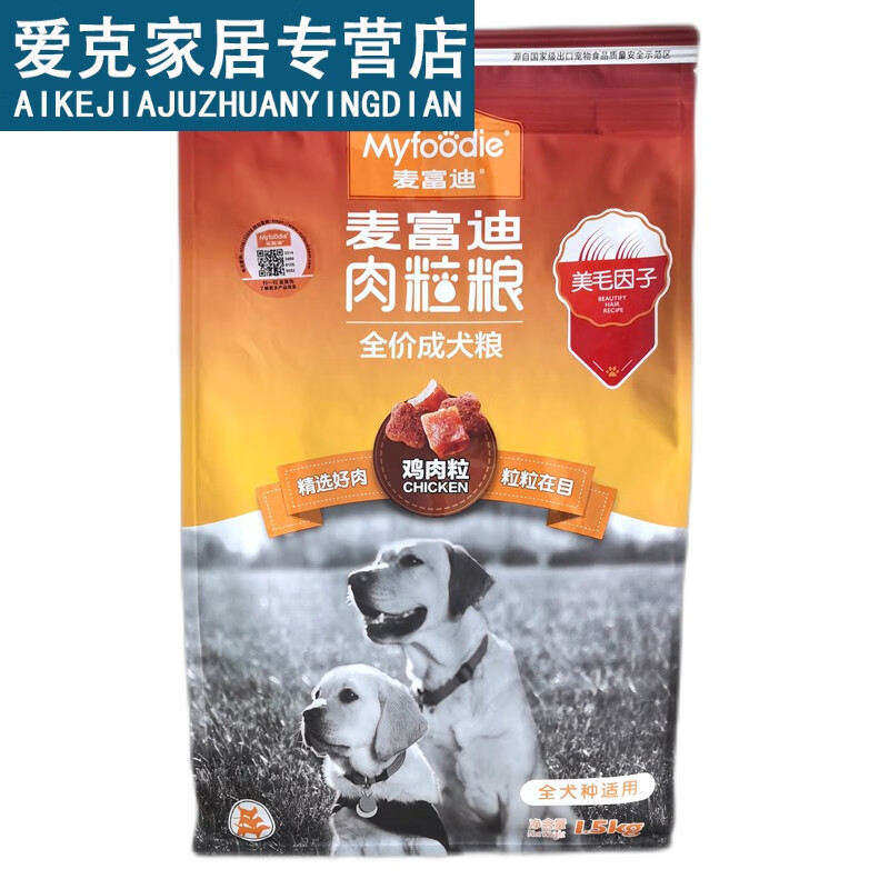 麦富迪(Myfoodie)麦富迪肉粒粮双拼狗粮犬粮泰迪柯基博美柴犬狗粮宠物主粮 成犬肉粒粮1.5kg【 鸡肉粒】