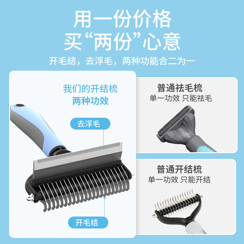 hoopet狗狗梳子去浮毛开结梳大型犬狗毛清理器宠物猫咪祛毛刀梳毛刷子猫 升级款开结祛毛两用梳-蓝色22齿(中大型犬猫适用)