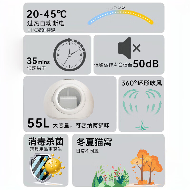 宠智迪宠物烘干箱猫咪狗狗洗澡烘干机家用智能恒温杀菌护毛吹水神器 基础款(紫外线 富氧新风系统)