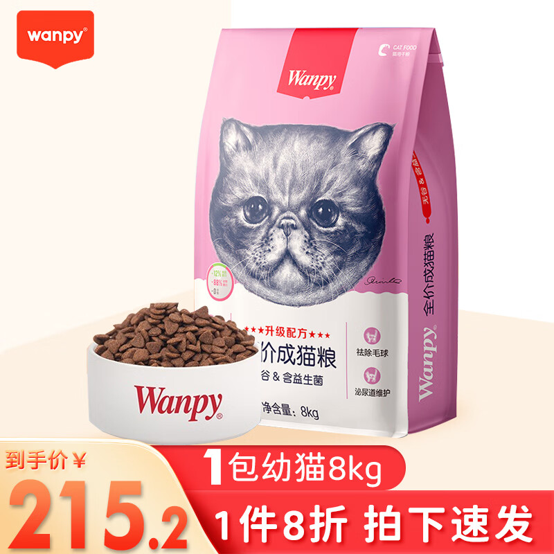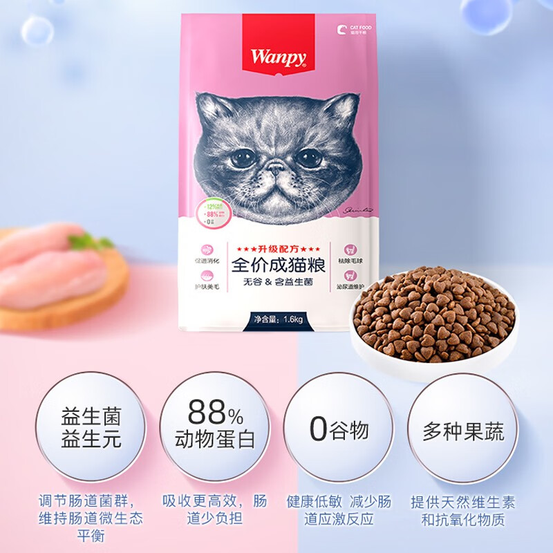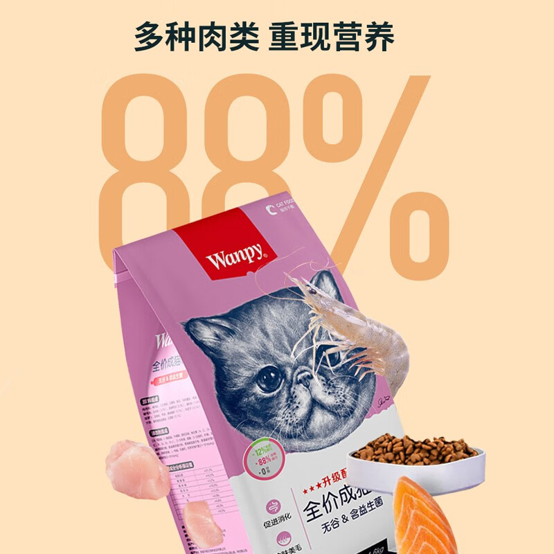 顽皮wanpy猫粮鸡肉味全价猫粮居家宠物主粮幼猫成猫布偶英短美短猫粮专用营养发腮低温烘焙粮猫咪食品 无谷益生菌成猫8kg
