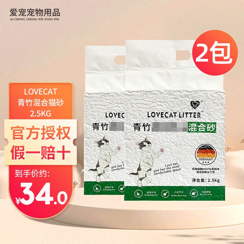 爱宠爱猫猫砂 love cat猫砂豆腐猫砂原味绿茶植物猫砂除臭易结团可冲马桶 青竹混合猫砂 5斤*2包