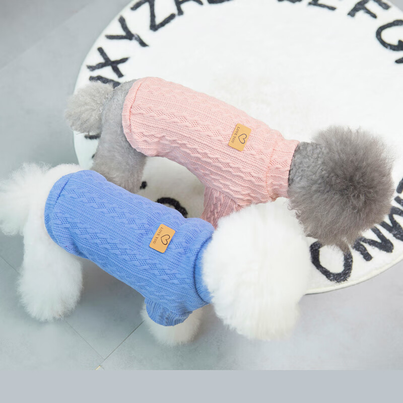 DogBaby狗狗衣服秋冬装新款可爱泰迪比熊博美犬冬季加厚保暖 21四色毛衣-天蓝 S码(背长20厘米:适合2-3斤)
