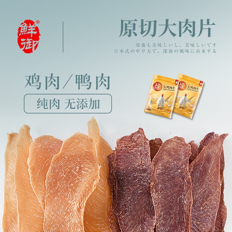 【七仓直发】鲜御狗狗零食鸡肉干鸭肉干宠物 大肉片成犬幼犬磨牙洁齿训练奖励零食300g\/袋 鸡肉大切片