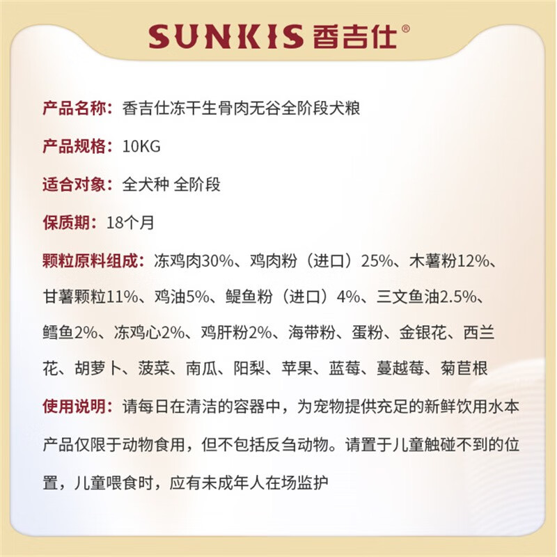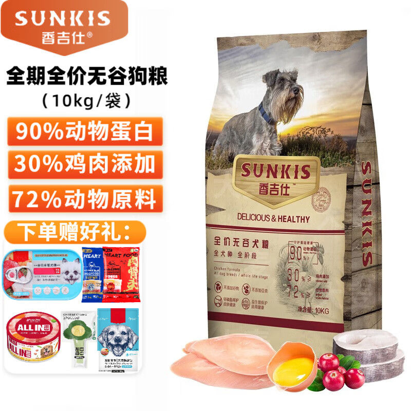 香吉仕香吉士狗粮繁育狗粮全价冻干无谷通用成犬幼犬全期狗粮20斤 【爱吃肉选它】10kg全期无谷狗粮