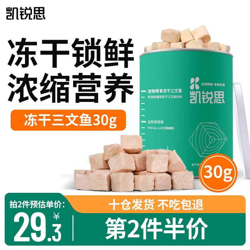 凯锐思 宠物猫咪零食冻干鸡肉猫小鱼干猫增肥营养发腮补钙 冻干三文鱼 | 2件¥58.5