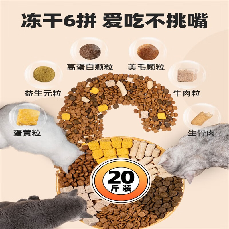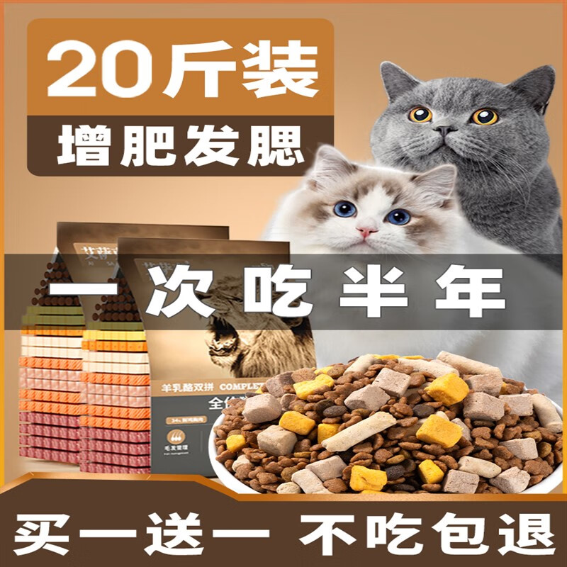 哆莫阳光(DUOMOYANGGYANG)冻干猫粮成猫20斤装幼猫全价生骨肉营养增肥发腮全阶段10kg大袋 买1送1【营养双拼】共20斤 0lb限时忧惠10沅