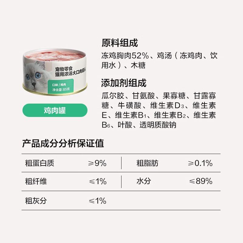 网易严选猫罐头猫咪零食宠物水煮鸡胸肉猫粮猫湿粮浓汤大块白肉罐头 【浓汤大口白肉罐】鸡肉味85g*24