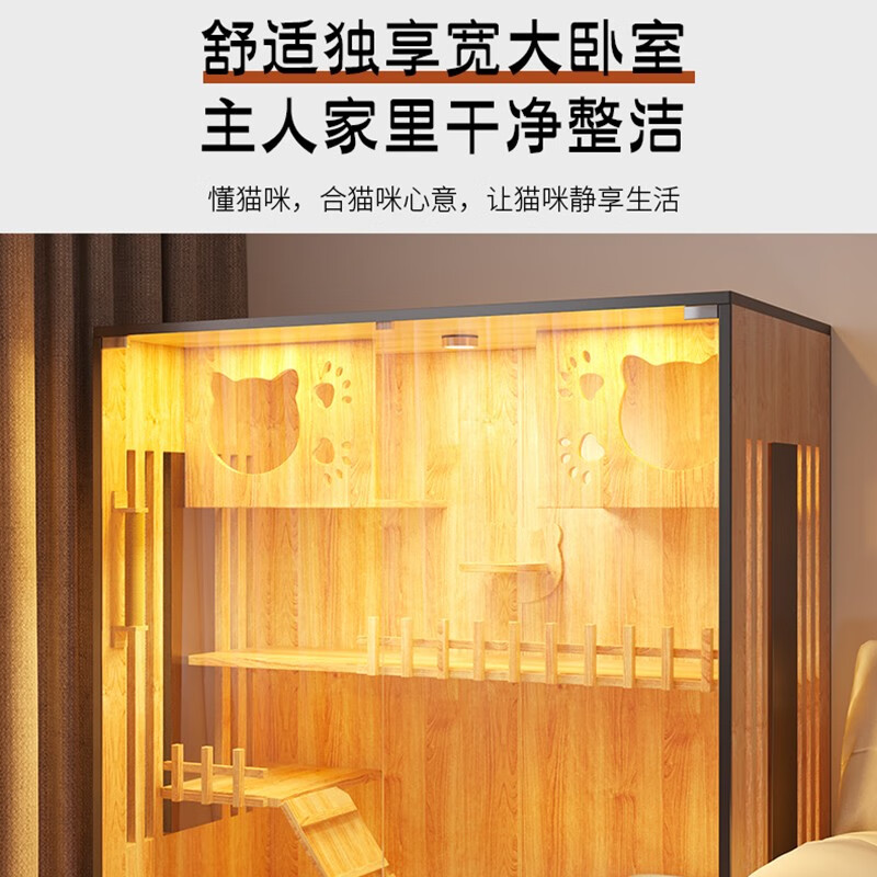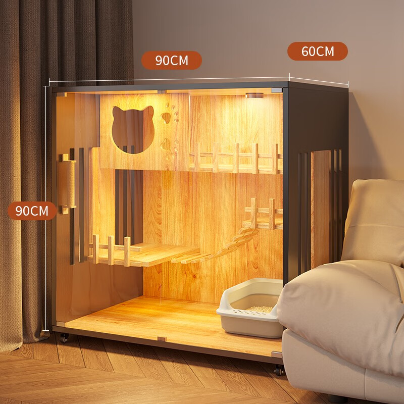 蒂乐森 猫别墅实木猫笼子猫舍家用猫窝展示柜两层猫咪繁育笼超大猫屋 H2防水款90*60*90CM 自己安装 送货到家