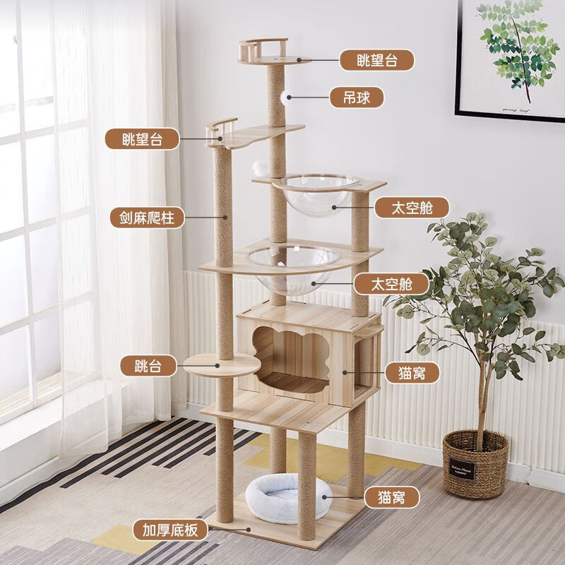 猫爬架实木树屋猫爬柱一体diy猫抓板猫咪攀爬架剑麻柱猫窝猫别墅 M-001
