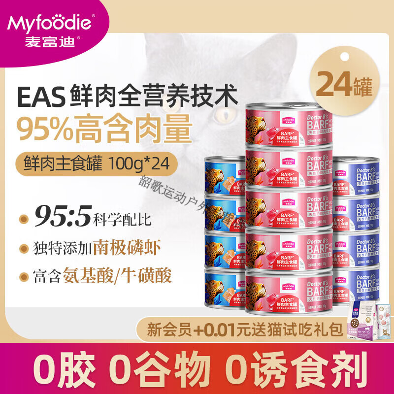 麦富迪营养猫湿粮2023 麦富迪猫咪罐头BARF主食罐生骨肉营养增肥成幼猫 barf主食罐100g*24罐(混合款) 1g以食品口味为准