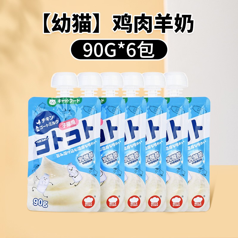 华元宠具(hoopet)地狱厨房猫零食咕噜酱金枪鱼鸡肉泥幼猫成猫增肥猫条湿粮 【 幼猫】鸡肉羊奶-90g*6包