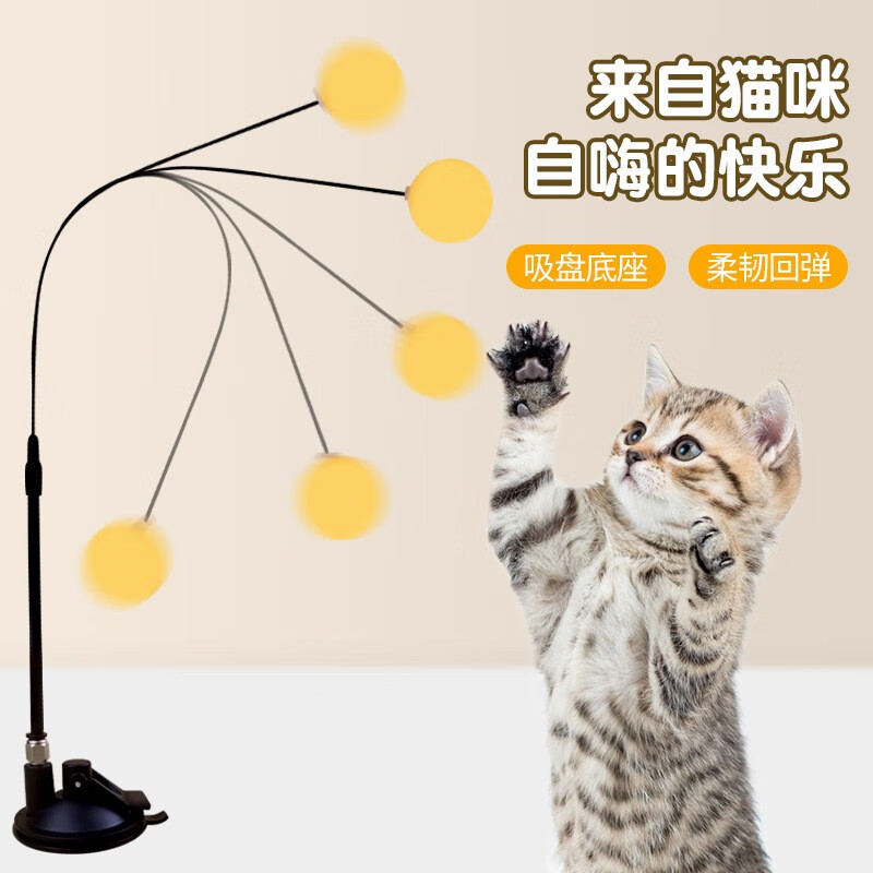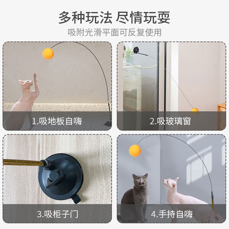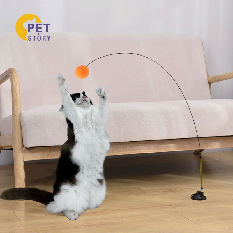 petofstory 猫玩具逗猫棒球小猫逗猫球猫咪自嗨杆可替换手持吸盘式不倒翁弹力乒乓球可自己玩的