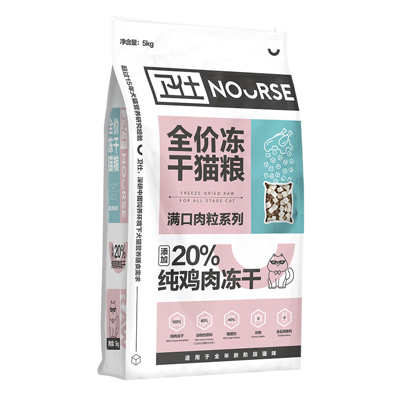 卫仕猫主粮冻干猫粮5kg天然粮冻干鸡肉发腮英短蓝猫通用全价粮