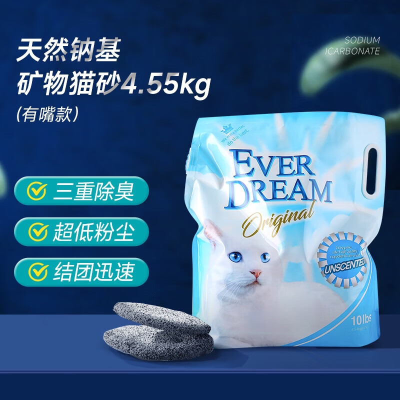 蓝梦(Ever Dream)天然钠基矿砂矿石猫砂活性炭除臭低尘破碎混合膨润土猫沙 天然钠基矿物-4.55kg(无嘴款)