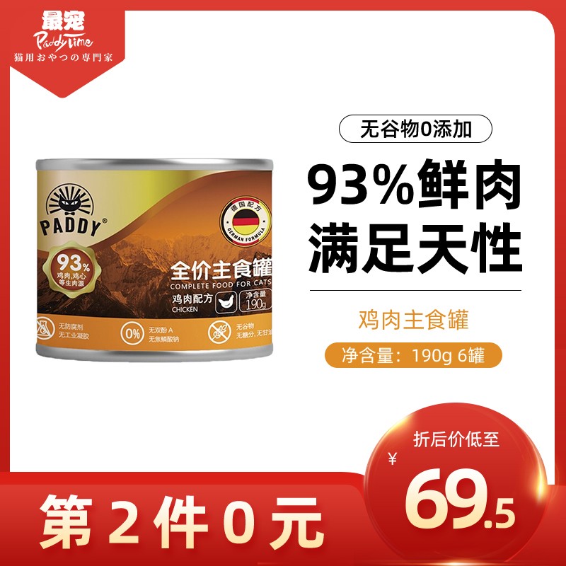 澳洲品牌 最宠(Paddy Time)猫湿粮 猫咪罐头全价无谷主食级湿粮软包成猫幼猫通用猫咪主食罐头 最宠主食猫罐-鸡肉190g*6罐