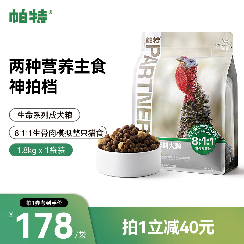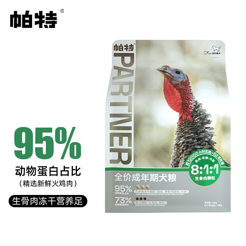 帕特生命系列犬粮生骨肉冻干无谷低敏火鸡肉全价犬粮宠物狗粮1.8kg