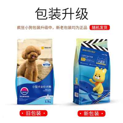 疯狂小狗狗粮肉粒双拼小蓝包小型犬泰迪博美幼犬成犬通用型1.5kg