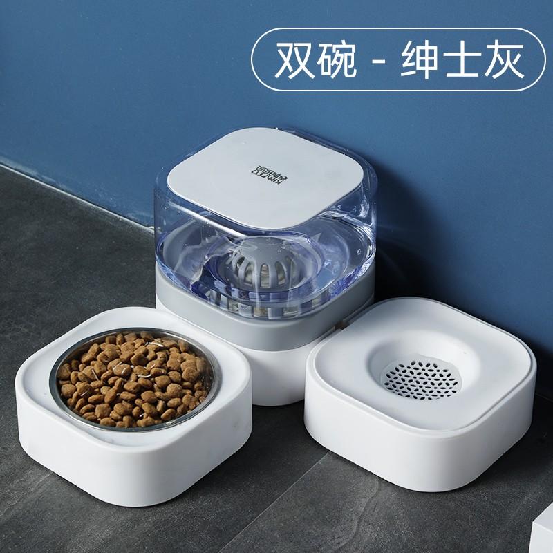 KimPets猫咪饮水机不插电流动喝水器狗狗自动喂水喂食猫防湿嘴打翻宠物碗 双碗-绅士灰 M-中型