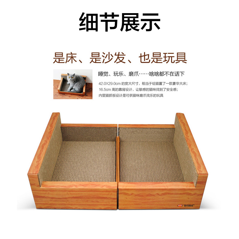 田田猫2件套装瓦楞纸猫抓床猫抓板组合猫沙发猫磨爪猫用品