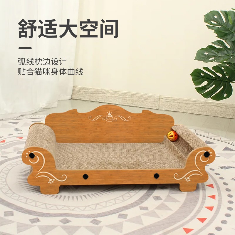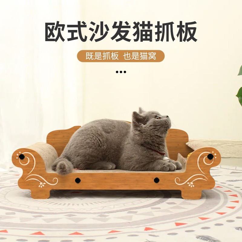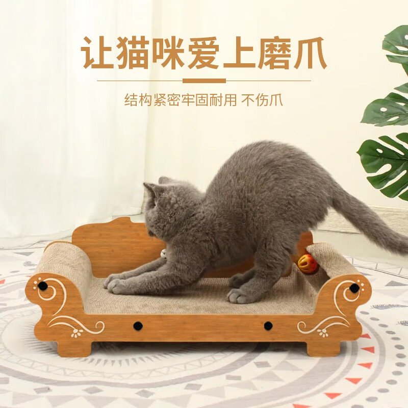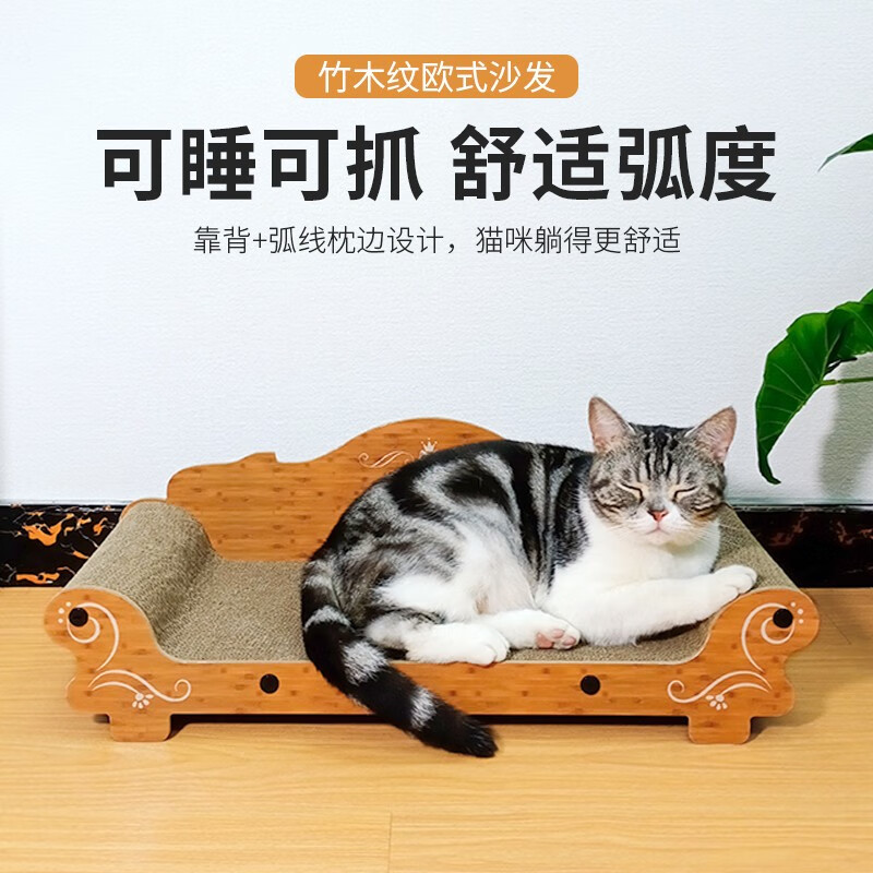 得酷 猫抓板 沙发床贵妃椅瓦楞纸猫窝磨爪器耐磨猫咪玩具用品 欧式沙发大号 55*26*20CM 适10斤内猫
