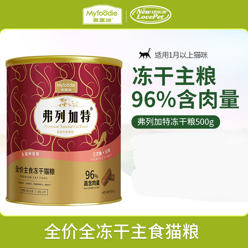 弗列加特猫粮 成猫幼猫通用型鸡肉冻干生骨肉全价天然猫主粮 三文鱼 鸡肉500G