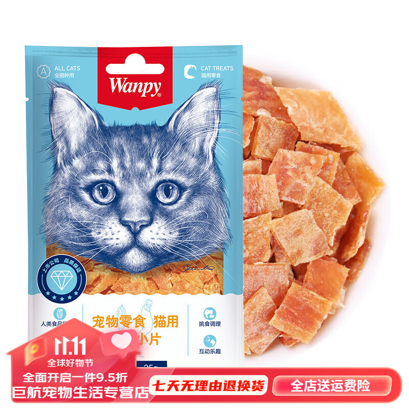 凛东顽皮wanpy猫零食金针软丝鸡肉干金枪鱼猫咪增肥营养罐头小零食猫 混合口味可备注 3包