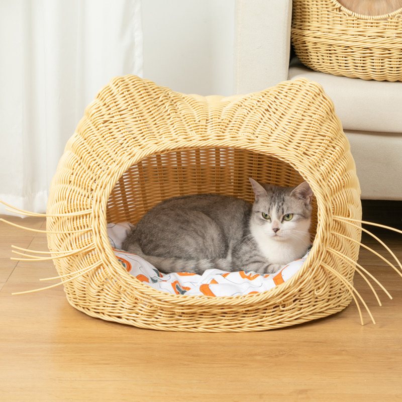 夏季藤编猫窝四季通用封闭式猫窝超大号室内夏天凉爽猫笼猫咪用品