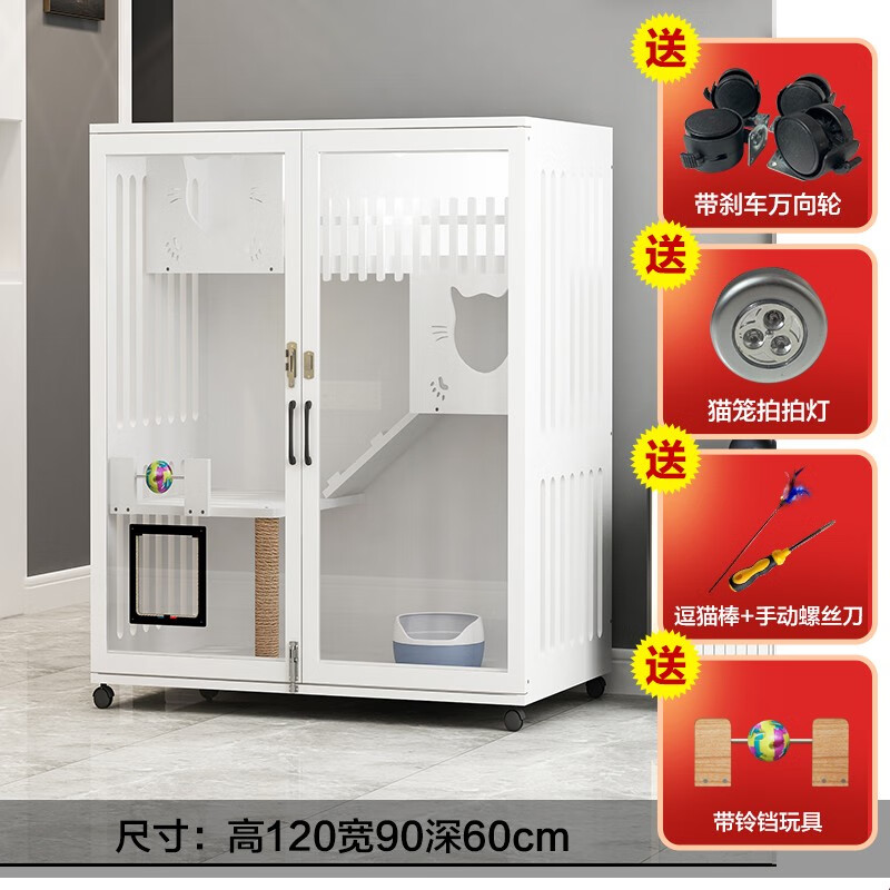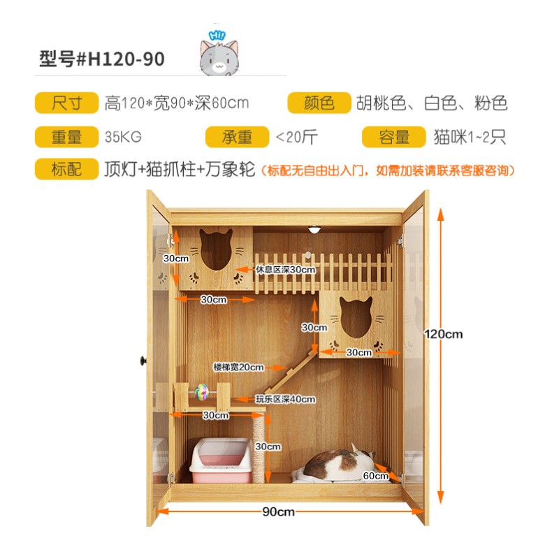 七夕旺猫笼子 实木生态猫别墅 猫笼木质 猫舍猫窝封闭式 防水可擦拭消毒 高120宽90深60白色
