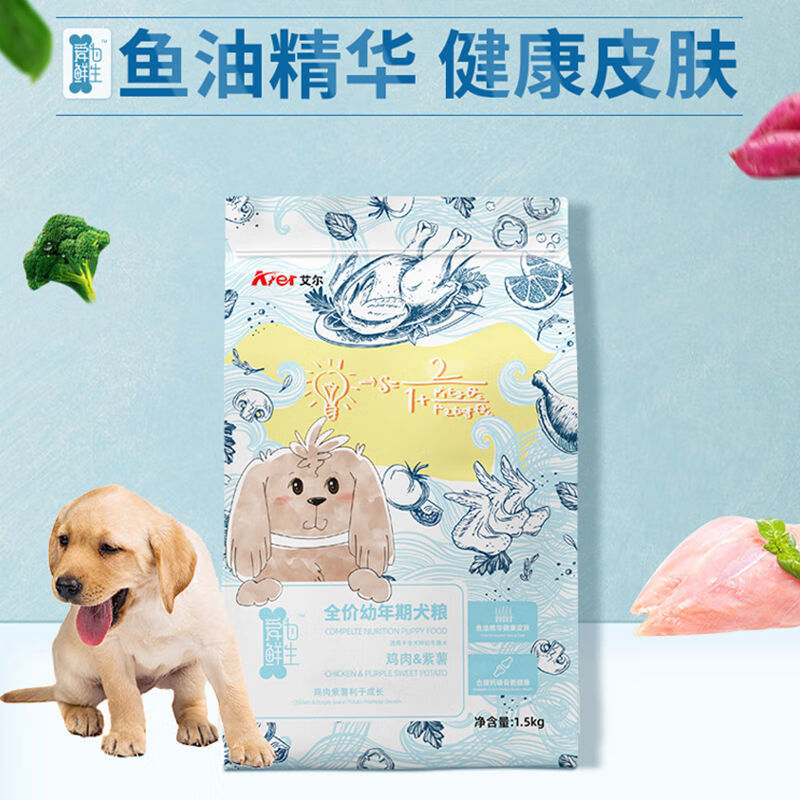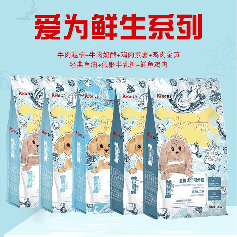 艾尔宠物狗粮爱为鲜生系列成犬幼犬泰迪哈士奇全犬种通用型犬主粮 鲜鱼鸡肉10KG