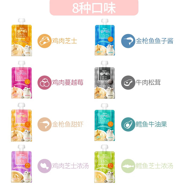 澳洲品牌 最宠(PaddyTime)猫零食金枪鱼鱼子酱100g*8袋咕噜酱肉酱浓汤包猫条营养酱吸吸乐肉泥羹罐头湿粮膏