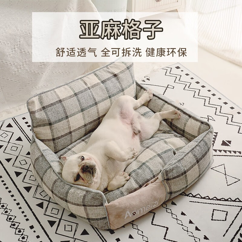 DR.ANIMALS狗窝高靠背宠物窝舒适透气四季通用 可拆洗中小型犬耐咬宠物窝 狗垫宠物垫泰迪狗窝 靠背灰格子XL码