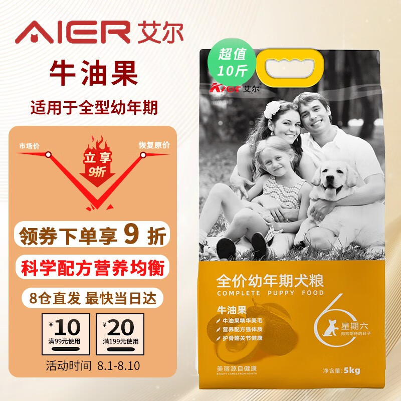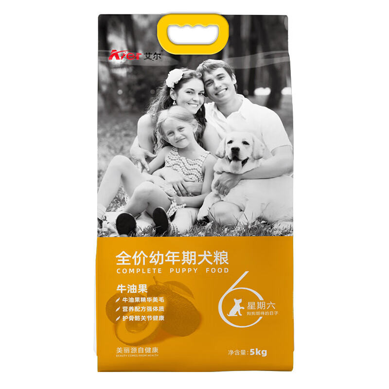 艾尔(Aier)狗粮星期六牛油果全价美毛泰迪比熊拉布拉多金毛边牧通用犬粮 星期六幼犬粮5kg 10斤