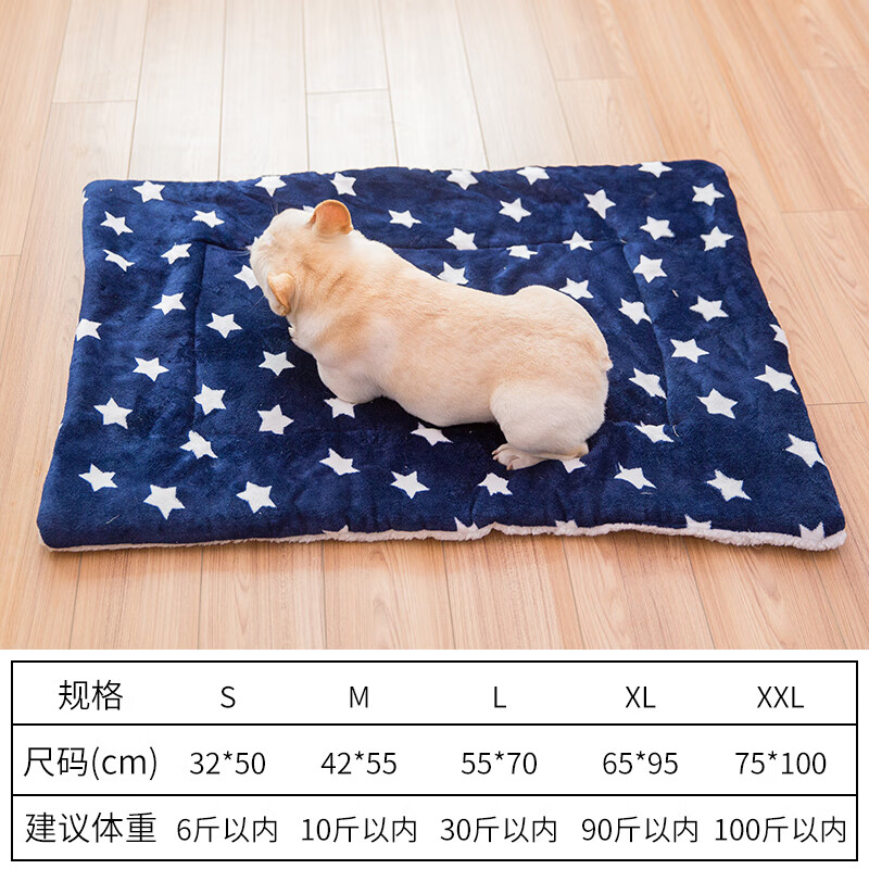 嬉皮狗宠物垫子猫咪睡垫四季通用狗狗垫子睡觉用宠物毯子猫笼平台垫猫垫 藏青星星 .m-中型(10.斤以内)