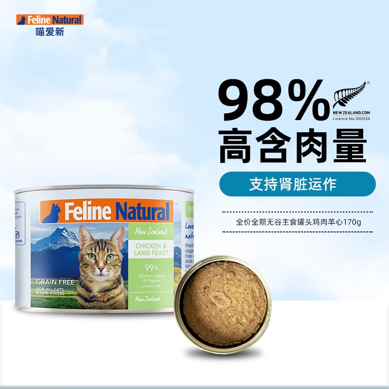 喵爱新(FELINE NATURAL)K9猫罐 新西兰原装进口成幼猫主食罐头 鸡肉羊心170g