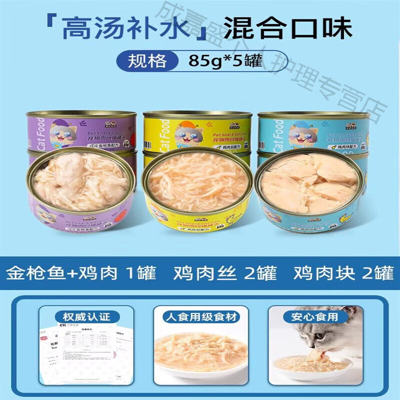 爱肯拿(ACANA)猫罐头主食罐幼成猫补充营养增肥发腮猫咪零食补水湿粮猫条罐整箱 3种口味混合85g*5罐【金枪鱼鸡 85g罐