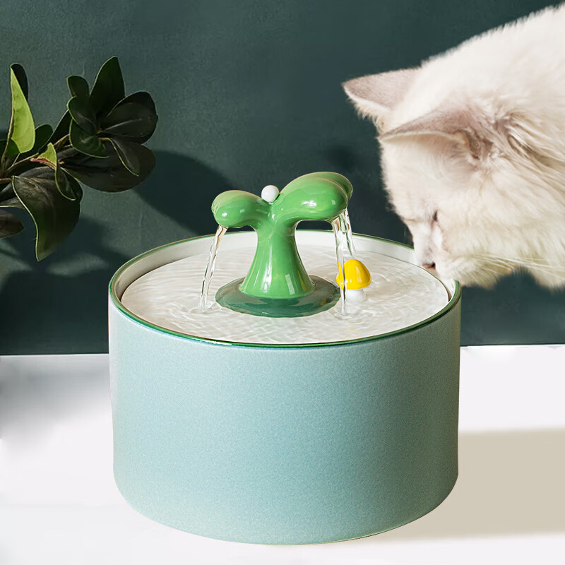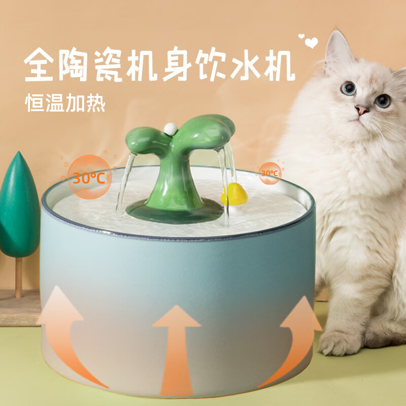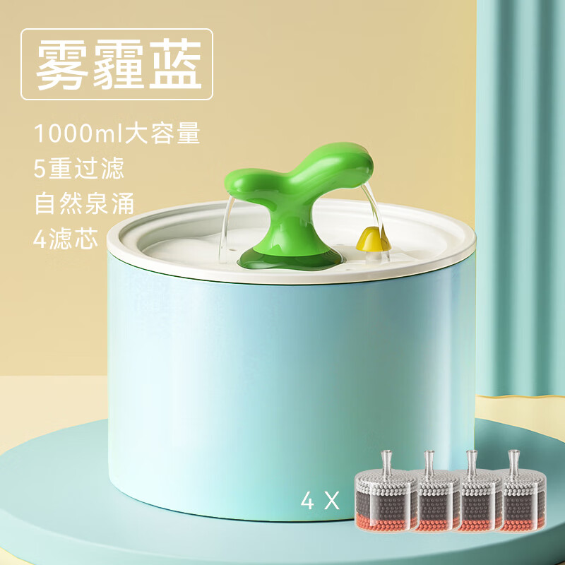 HKML 猫咪饮水机 猫咪饮水机流动陶瓷恒温加热饮水器自动宠物不湿嘴喂 升级高边款-蓝色1L自循环_防干