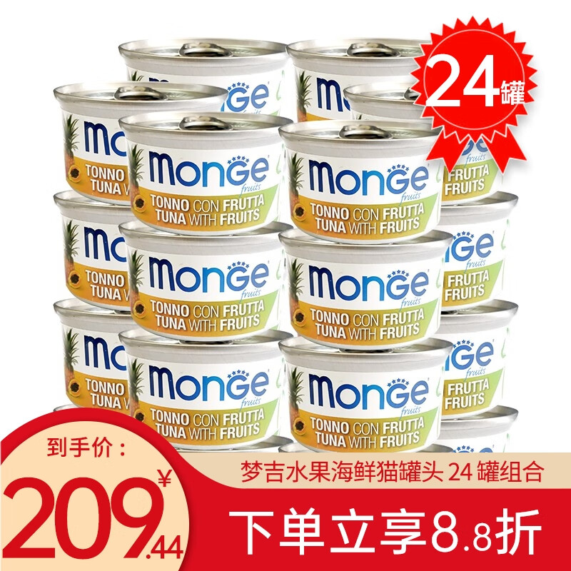MONGE意大利梦猫罐头吉天然果冻水果金枪鱼成幼猫老年猫湿粮零食 24罐 水果系列 金枪鱼 水果