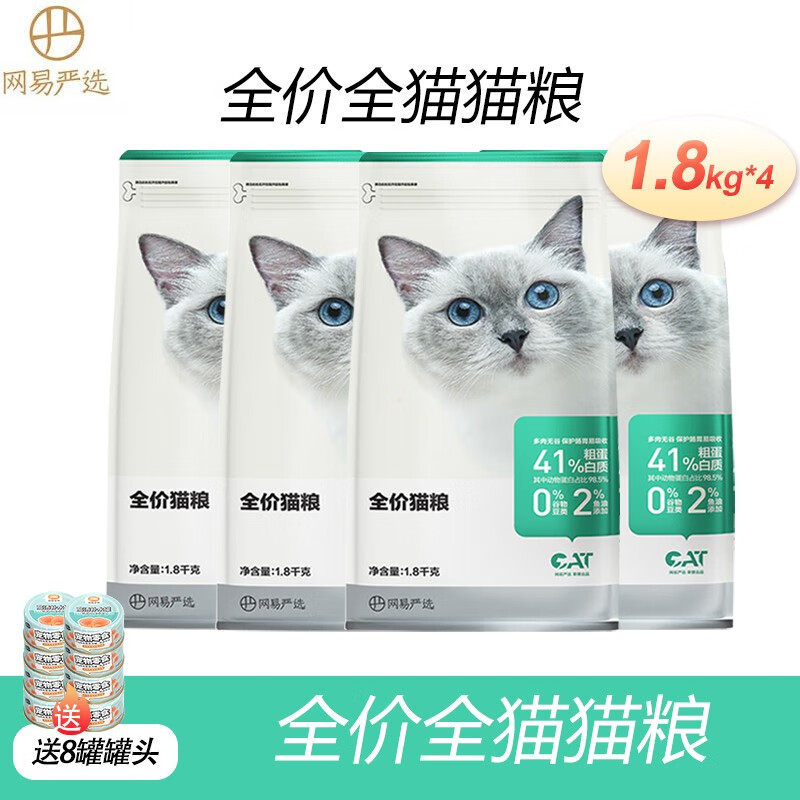 网易严选猫粮全价幼猫成猫鱼肉鸡肉冻干全阶段营养无谷增肥发腮天然粮 【七种鱼 鸡肉】全猫粮7.2kg