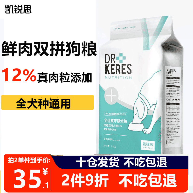 凯锐思肉粒双拼D12狗粮成犬狗粮泰迪金毛狗粮呵护肠胃配方 12%肉粒添加 | 1.8kg