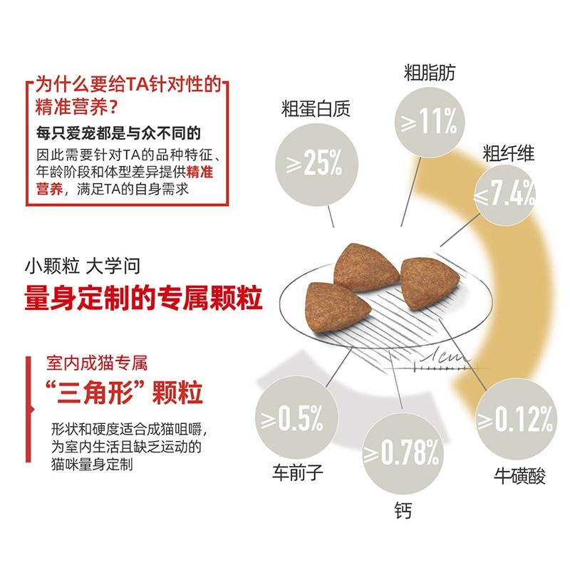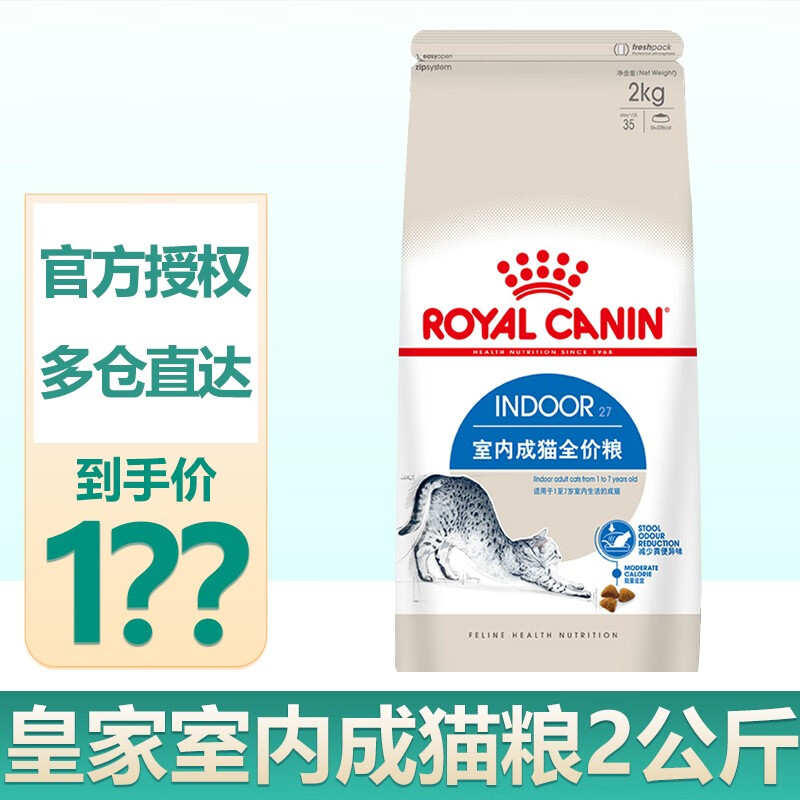 皇家(ROYAL CANIN)猫粮 I27室内成猫猫粮 全价粮 通用粮 12月以上高易消化蛋白 I27 Indoor室内成猫粮(2kg)
