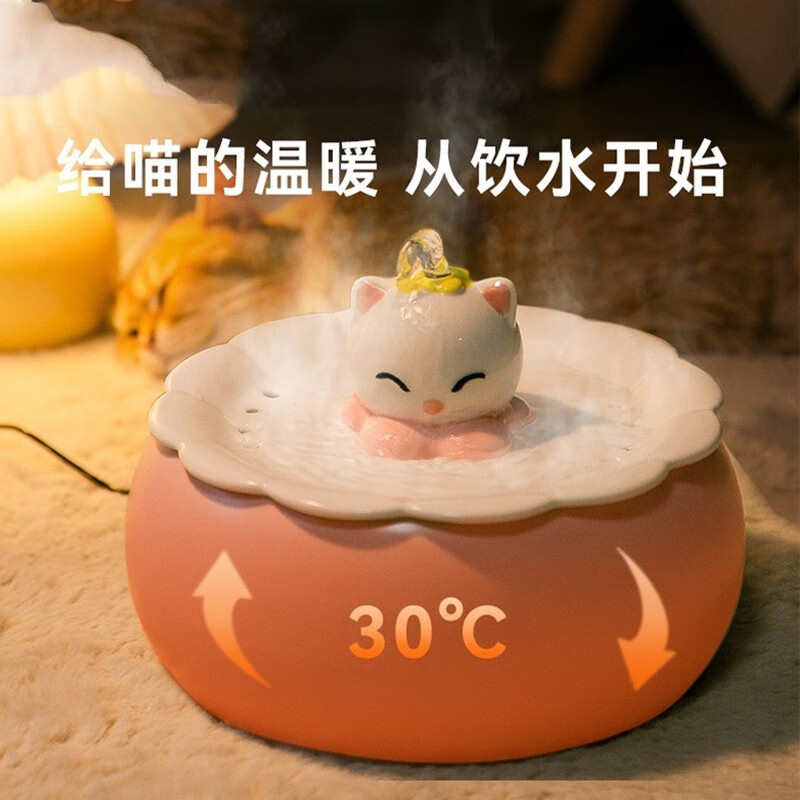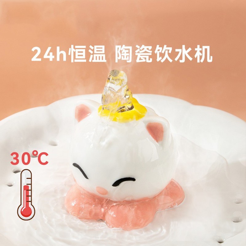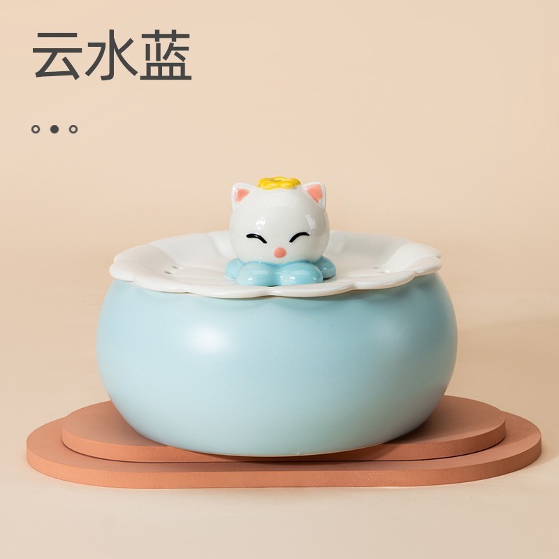 嬉皮狗 猫咪恒温饮水机宠物加热陶瓷智能宠物饮水机自动循环流动水猫咪狗狗喂水器拆洗更方便 云水蓝【基础款】