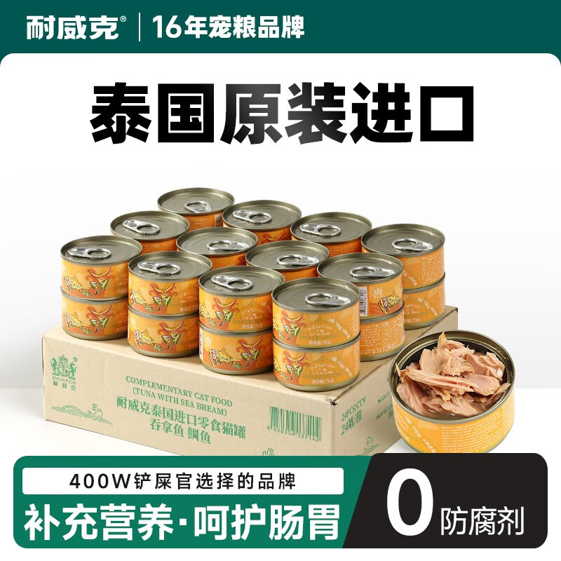 耐威克 泰国进口猫罐头70g*24罐成猫幼猫湿粮猫零食罐头整箱 泰国进口丨吞拿鱼 鲷鱼70g*24罐