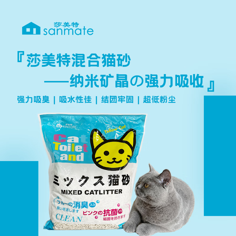 莎美特混合猫砂膨润土豆腐猫砂矿晶纳基矿石猫沙2.5kg*6包 6包 混合猫砂2.5kg/包