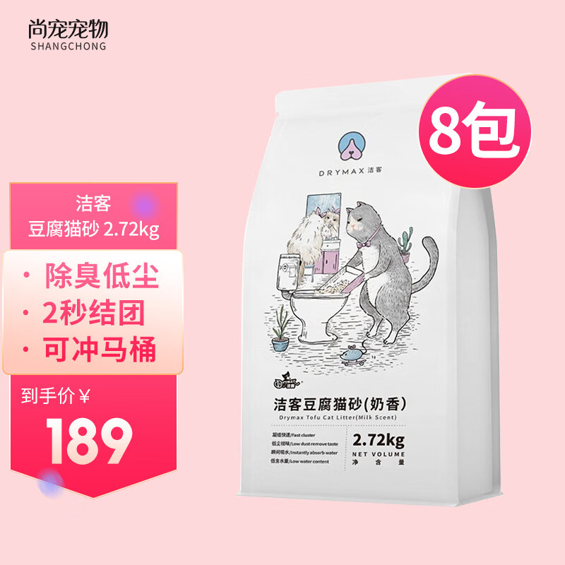 洁客猫砂 懒人猫砂 奶香绿茶豆腐猫砂混合猫砂除臭无尘易结团可冲马桶 豆腐猫砂(奶香)2.72kg*8包