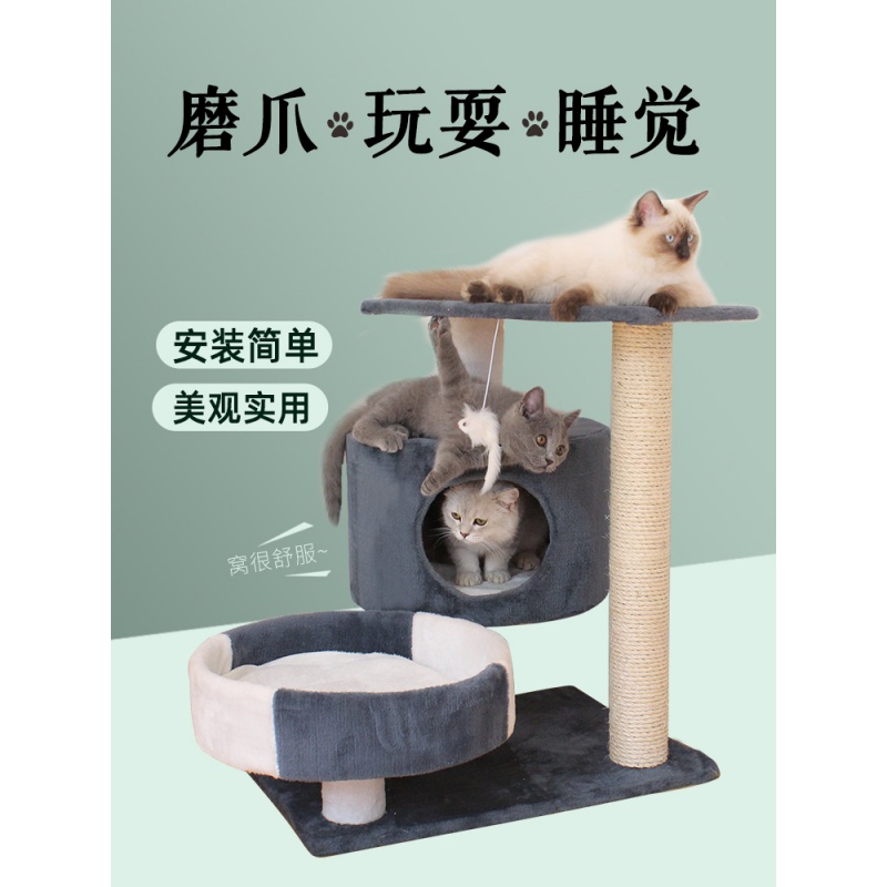 高档高档猫咪用品网红猫爬架猫窝猫树实木一体猫爬架小型猫抓板柱