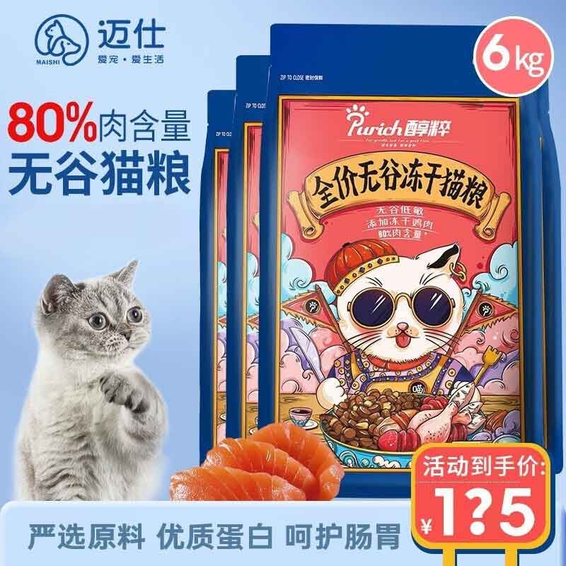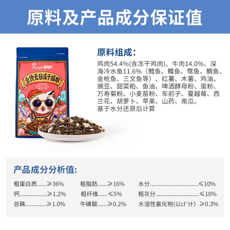 醇粹(Purich)猫粮成猫幼猫粮无谷配方添加鸡肉冻干鲜肉营养英短美短全价通用粮 无谷冻干6kg(80%肉含量)